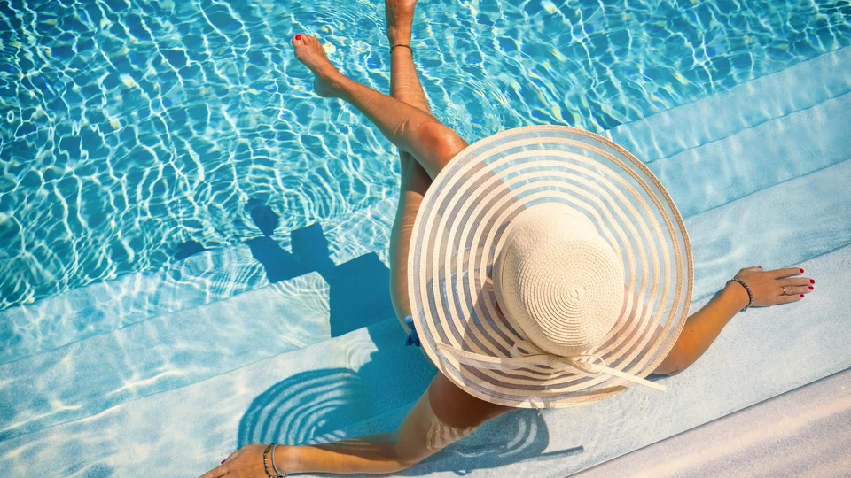 - Piscina estilo centro turístico y spa con tumbonas y cabañas.