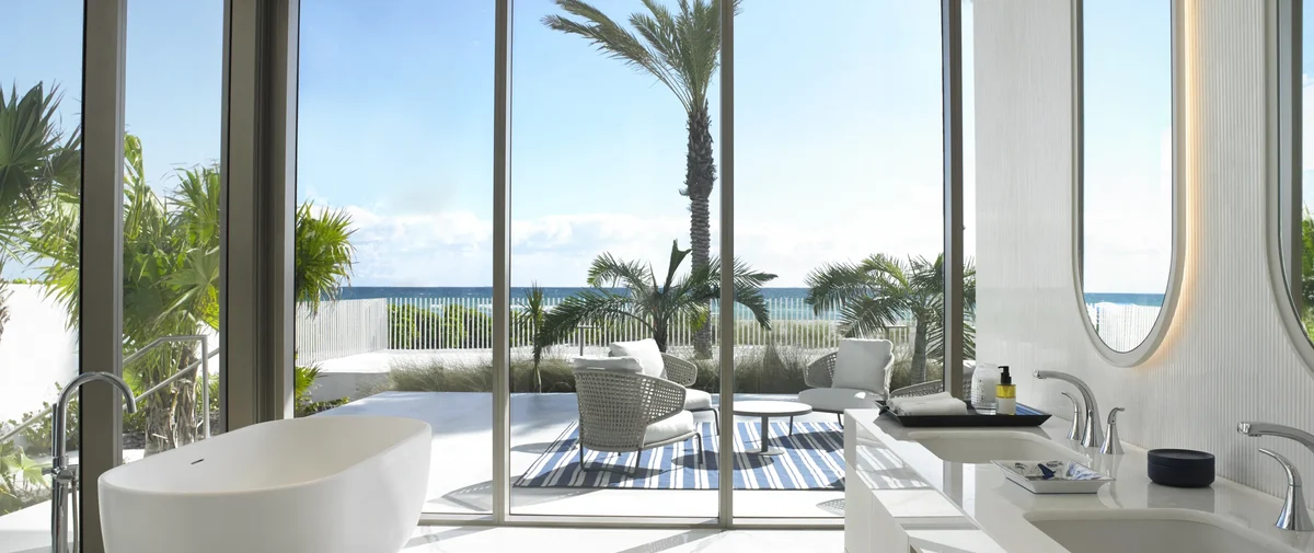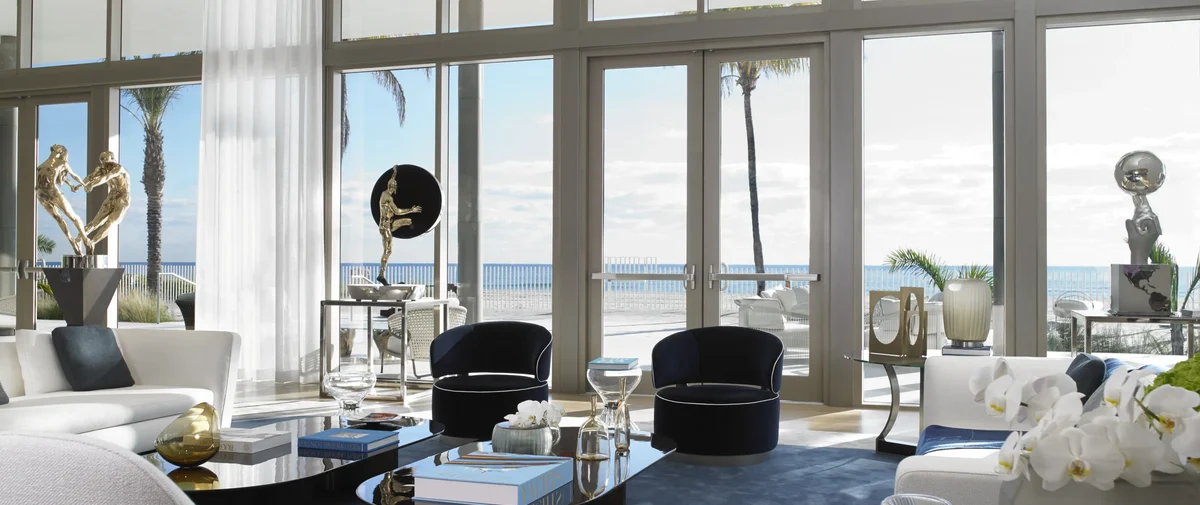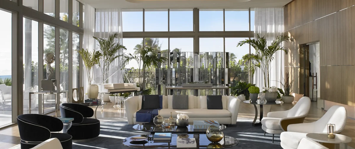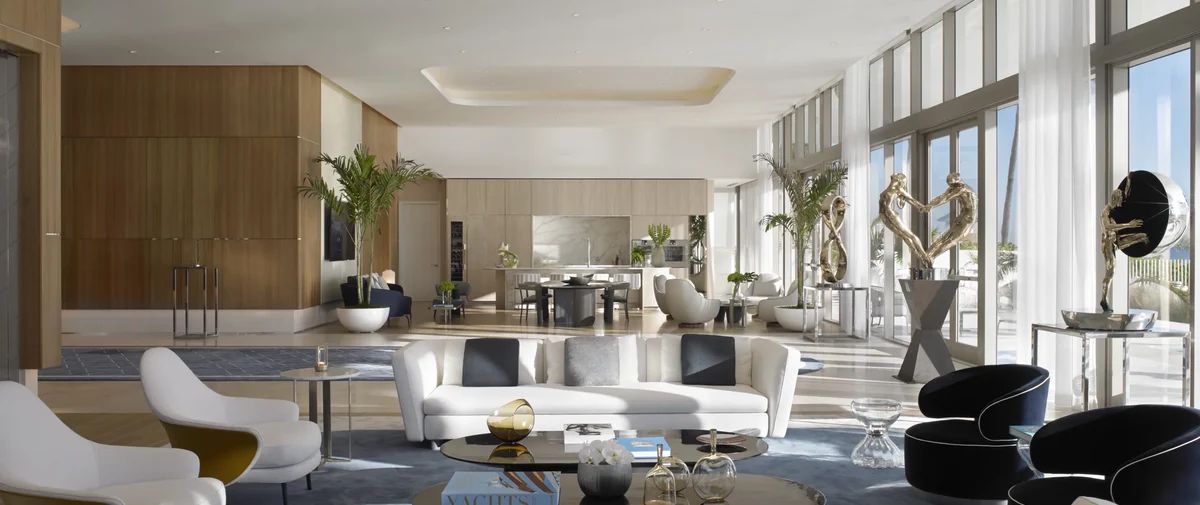 Situado en un terreno privilegiado con 435 pies lineales de playa de arena blanca, el complejo ofrece vistas ininterrumpidas al océano Atlántico, al Intracoastal y a la ciudad, a través de ventanales de piso a techo en todas las residencias. Con layouts que van desde los 2,000 hasta más de 10,000 pies cuadrados, cada residencia está diseñada para proporcionar volumen, luz natural y acabados de la más alta calidad.