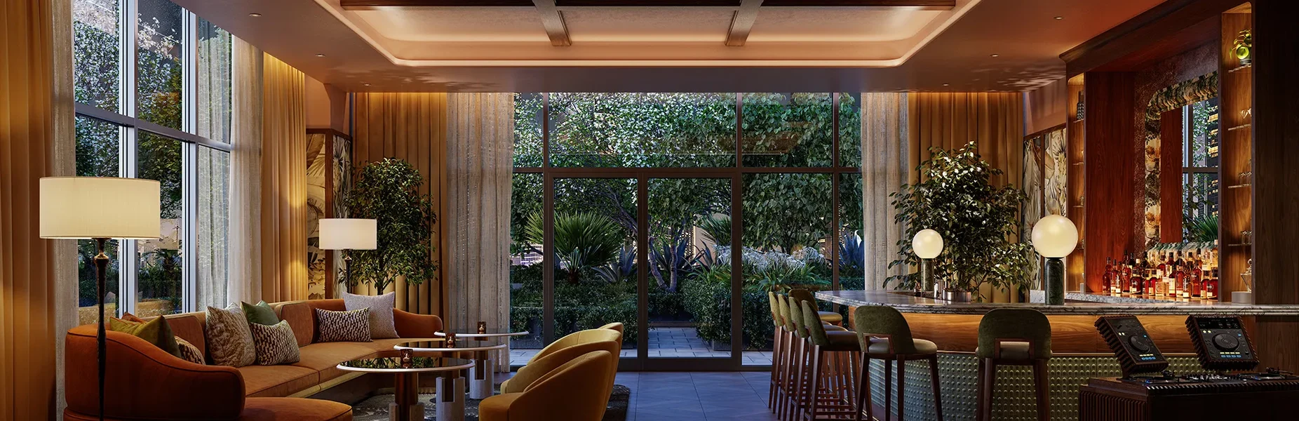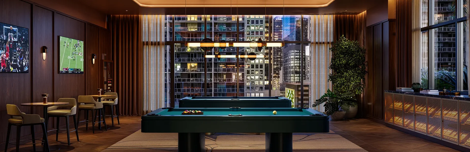 - Salas club para residentes con bar, billar, e instalaciones multimedia.