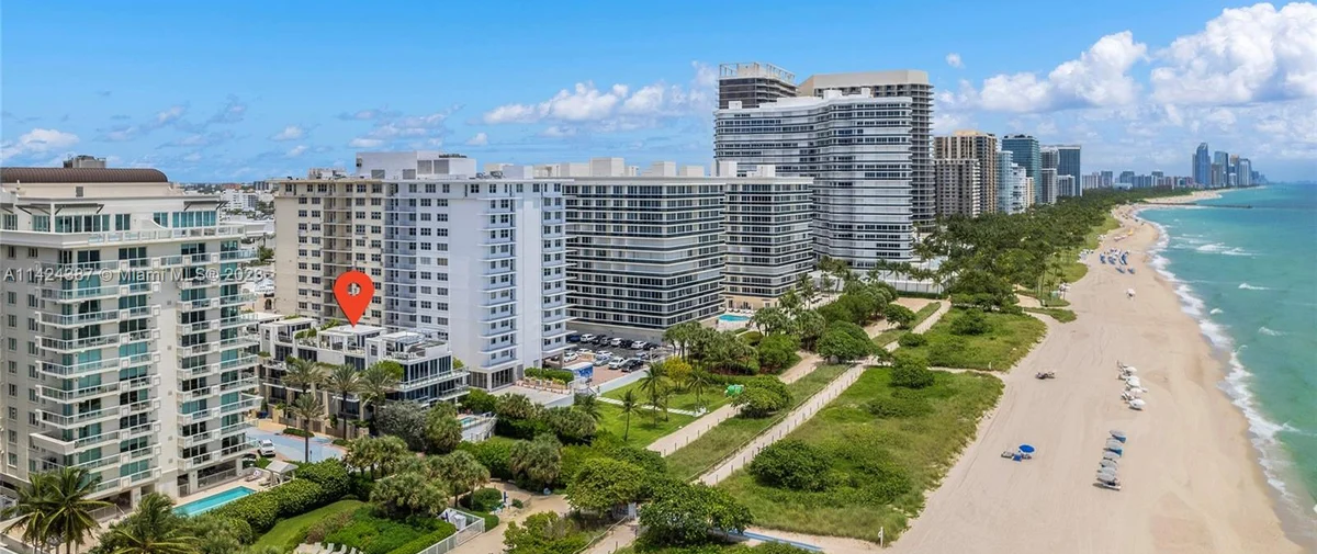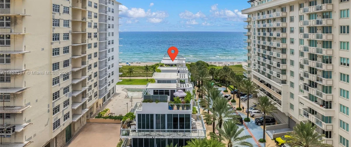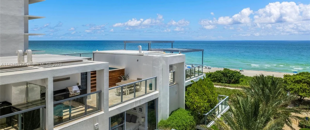 Ocean Seven is a group of seven oceanfront townhomes located in Surfside, Florida. Completed in 2014, Ocean 7 was developed by Property Markets Group (PMG) and designed by architect Schapiro Associates. The seven floor plans at Ocean Seven all contain 4 bedrooms, 5.5 bathrooms, and a 2-car garage. The indoor square footage is just over 4,000 square feet while the outdoor area adds an additional 1,188 to 2,170 square feet (see Ocean Seven floor plans).