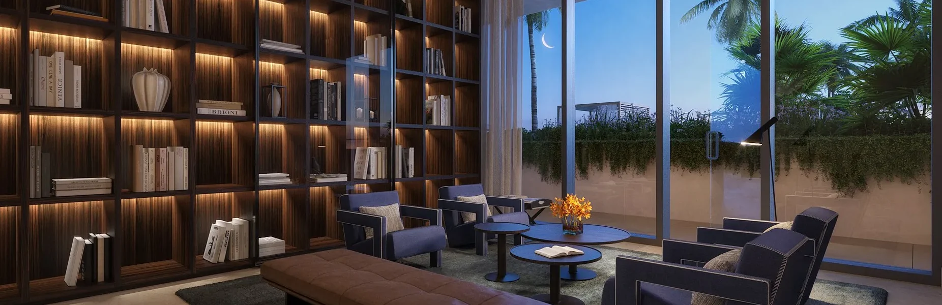 - Lissoni Library and coworking lounge with private meeting rooms.