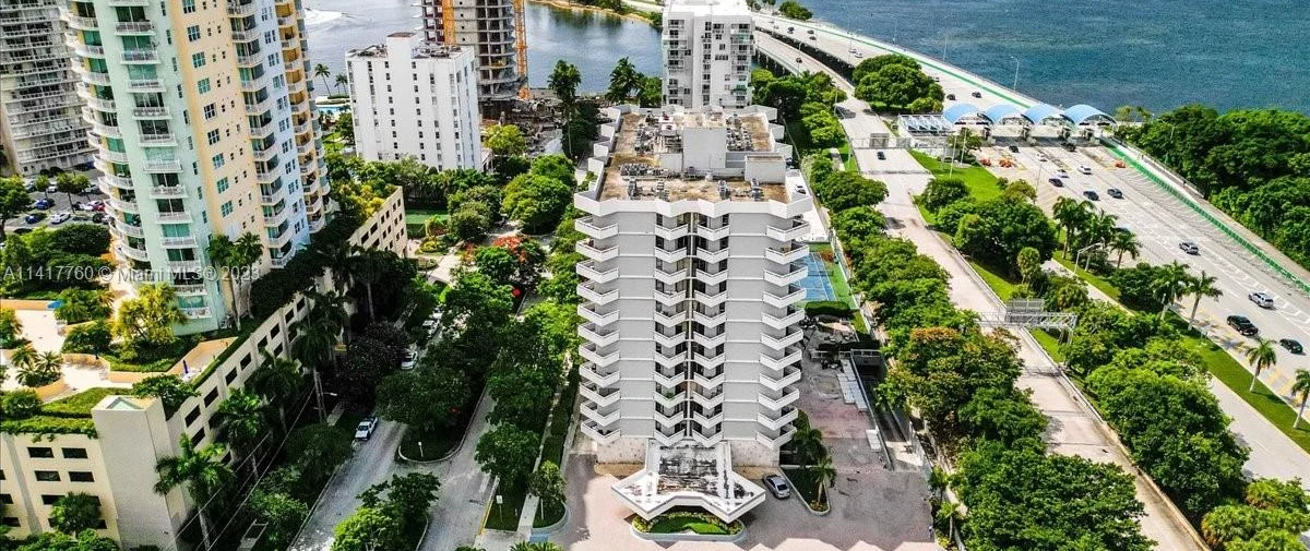 Completed in 2004, Brickell Arch (formerly called Espirito Santo Plaza) is a mixed-use building comprised of condominiums, hotel, and office space. Located in Miami’s Financial District, Brickell Arch rises 36 floors and includes 116 condo residences comprised of studios, one-bedroom, and two-bedroom floor plans plus penthouses. The condos offer fabulous views of the city and water. The hotel brand at Brickell Arch is the Conrad Hotel which occupies 225,000 square feet of the building’s overall space. Attached to the rear of the building is a 12-story parking garage with a walking bridge leading to the second floor. The architectural design of Brickell Arch is iconic and loosely based on the Gateway Arch in St. Louis, Missouri. Brickell Arch was designed by the well-known architectural firm, Kohn Pedersen Fox Associates.