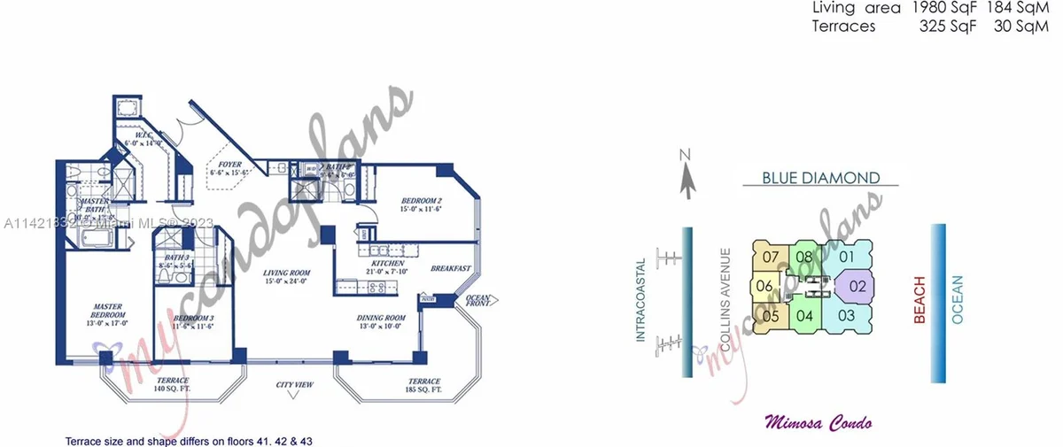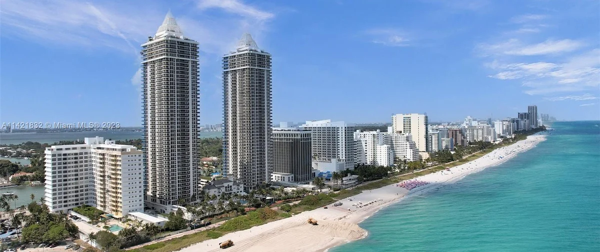 Green Diamond condominiums is the sister tower of Blue Diamond. They are both 45 stories high and are the tallest twin buildings located on the ocean in Southeast Florida. This high-rise condo building offers wonderful views of Biscayne Bay and the Miami skyline. Green Diamond Miami Beach condos are conveniently located near South Beach, offering an abundance of culture and nightlife. The condo building is also just 10 minutes away from the Miami Convention Center and the “hot spots” of Miami Beach. Only 15 minutes from Green Diamond is the Miami International Airport, the Performing Arts Center, and Downtown Miami. Green Diamond was built in 2000 by New Florida Properties and Robert Swedroe, architect, and holds 315 units.