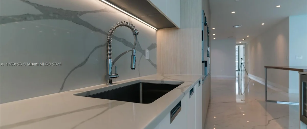 - Italian designed kitchens with Caesarstone quartz countertops and Gaggenau appliances including wine cooler, cappuccino maker, and more