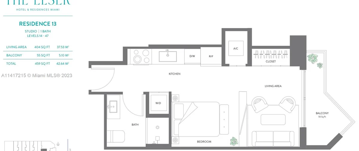 The Elser Hotel & Residences is a 47-story building designed by Property Markets Group (PMG) and Greybrook Partners with interiors by Cotofana Designs and architecture by Sieger Suarez Architects. The Elser Hotel & Residences, originally planned as an apartment tower, has 704 total units with studio to three-bedroom floor plans. The units at Elser Hotel & Residences feature fully furnished and finished units with 9-foot-2-inch ceiling heights with floor-to-ceiling windows throughout, balconies with stunning views, porcelain wood-grain tiles, built-in washer and dryer in select residences, custom Italian designed kitchen, quartz counters, and stainless steel appliances. Additionally, the units at The Elser Hotel & Residences showcase a smart keyless entry, smart thermostat, frames glass-enclosed showers, custom Italian vanities, a modern matte black kitchen, and fully built-out California-style closets. Residents of The Elser enjoy a number of wonderful amenities, including a lobby with cocktail bar and restaurant by Jaguar Sun®, over 19,000 square foot double-height amenity deck overlooking Downtown Miami and Biscayne Bay, curated art and green walls throughout all common areas, 132-foot resort-style pool with private lounge areas, 16-foot-long poolside screening LED wall, sky entertainment lounge and grilling terrace featuring eight grills, two-level co-working Lab featuring 11 reservable conference rooms, and a coffee lounge by Cafe Domino®.