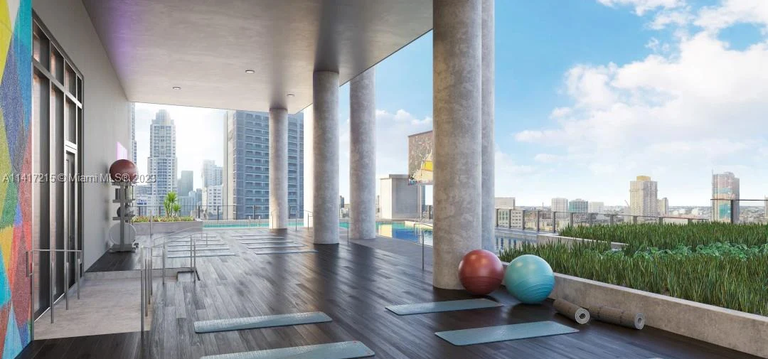 • Over 19,000 square foot double-height amenity deck overlooking Downtown Miami and Biscayne Bay