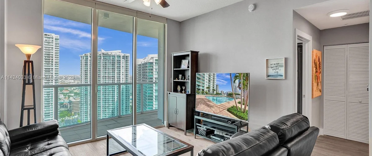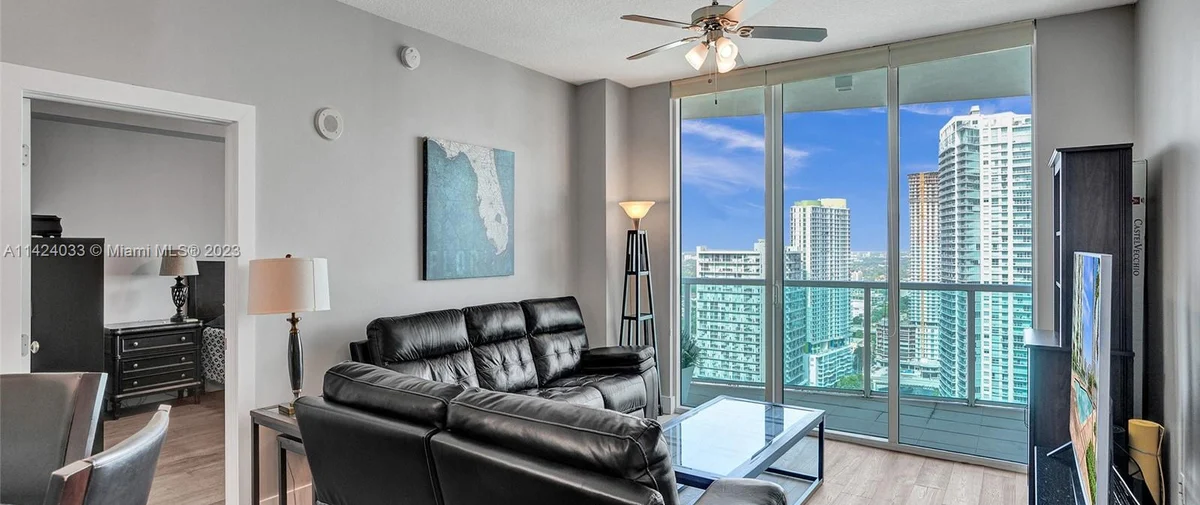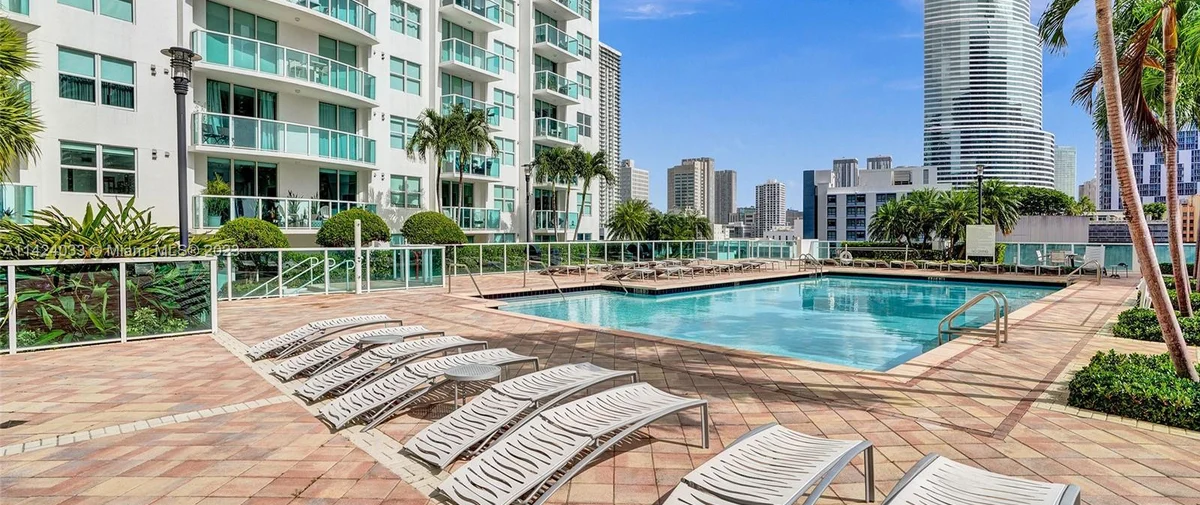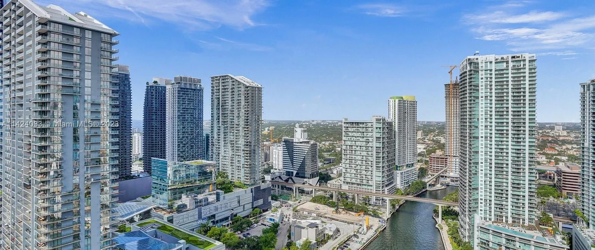 Brickell on the River South is a condominium development located at 41 SE 5th Street in Miami, Florida. Completed in 2006, this building offers 327 bi-level, loft-style residences with one- and two-bedroom floor plans. The apartments range in size from 799 to 1,339 interior square feet and feature double-height ceilings, floor-to-ceiling glass windows, stainless steel kitchen appliances, granite countertops, European-style cabinetry, and a private balcony. The building also has ground-floor retail and convenient access to a MetroMover stop.