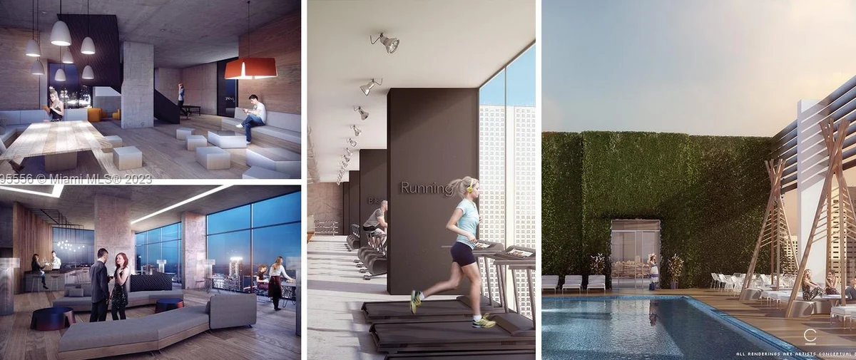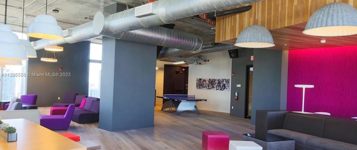 Centro is a 37-story condominium building located in Downtown Miami. Completed in 2016, Centro condominium was developed by Newgard Development Group, in collaboration with Yves Béhar, the award-winning designer and founder of FuseProject. Together they redefined the live/work/play lifestyle in Downtown Miami. Centro has 352 condo residences comprised of one-bedroom and two-bedroom floor plans (see Centro floor plans). The apartments at Centro feature open floor plans; concrete floors; stainless steel kitchen appliances; wood cabinetry; full-sized, front-loading washer and dryer; and a private balcony. Residents of Centro enjoy a number of excellent amenities, including a rooftop pool; a two-story sky lounge with a ping pong table, workspaces, bar, and media area; a fitness center with breathtaking views of Downtown Miami; and co-ed sauna and steam room. Additionally, Centro offers concierge and valet parking services as well as restaurant options on the ground-floor level. Centro condominium is located at 151 SE 1st St in Downtown Miami. Its location places residents of Centro within walking distance of Whole Foods Market, Bayfront Park, and Silverspot Cinema. By car, Centro is within 20 minutes of South Beach, Brickell, Wynwood Miami, and the Miami International Airport.