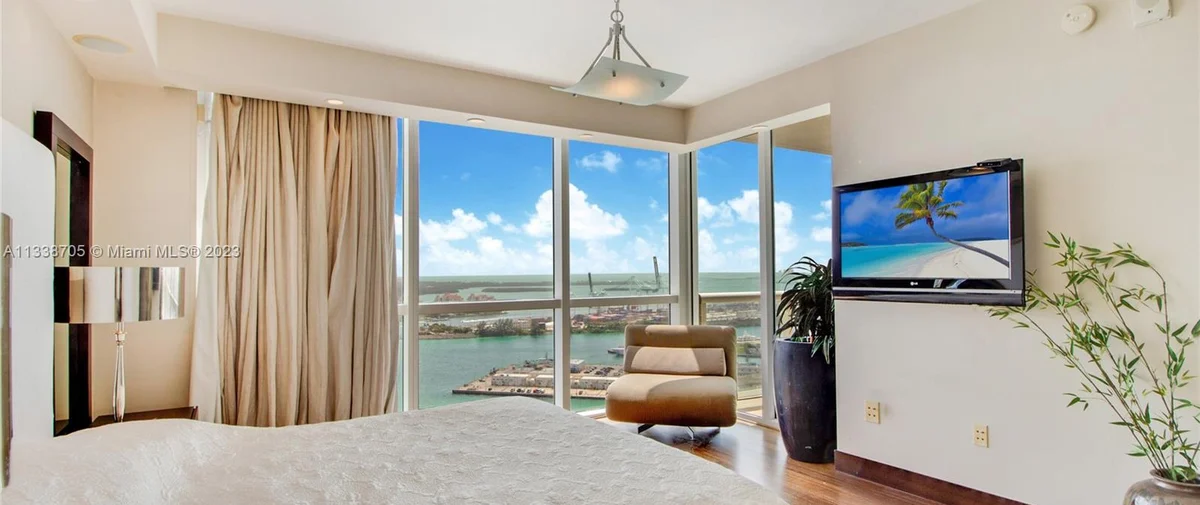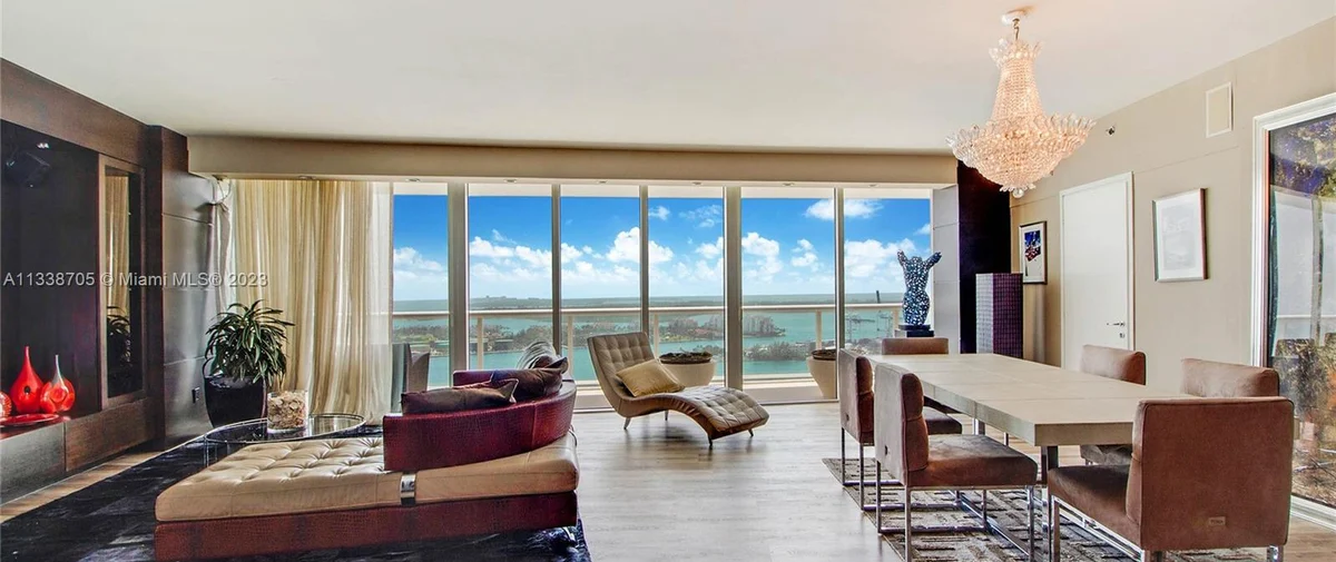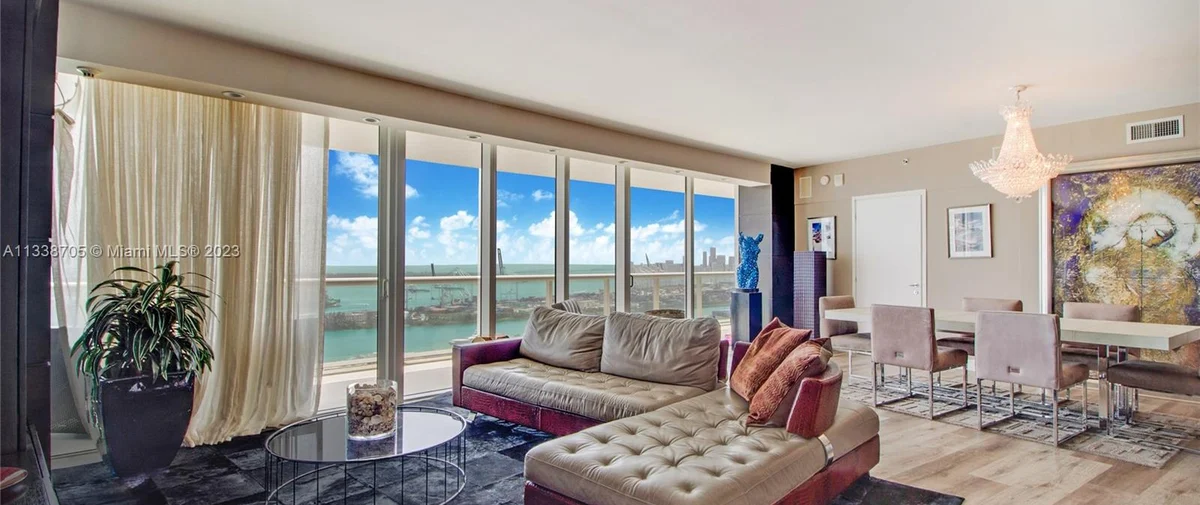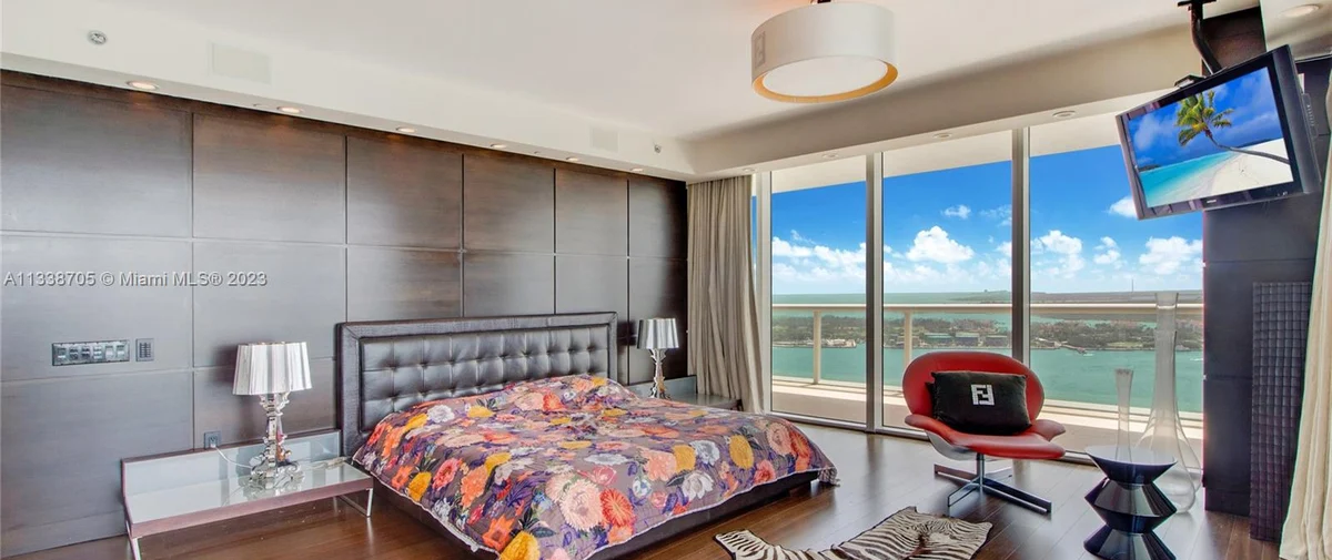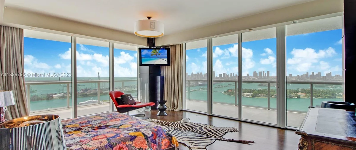 Icon South Beach is a 40-story, bayfront condominium building located in Miami Beach’s South of Fifth neighborhood. Completed in 2005, Icon South Beach was developed by Related Group and designed by architecture firm Sieger Suarez while the interiors of Icon South Beach – including its stunning, multi-story lobby – were designed by award-winning interior designer Philippe Starck. The development is situated along 1,000 feet of Biscayne Bay water frontage and behind the Miami Beach Marina. Icon South Beach has 289 condo residences comprised of one-, two, and three-bedroom floor plans ranging in size from 851 to 2,158 interior square feet plus balcony (see Icon South Beach floor plans). The apartments at Icon South Beach offer fabulous views of Downtown Miami, South Beach, the Atlantic Ocean, and Biscayne Bay.