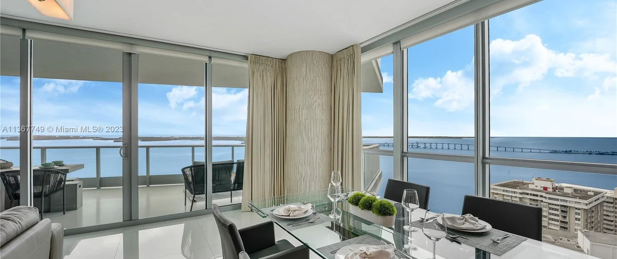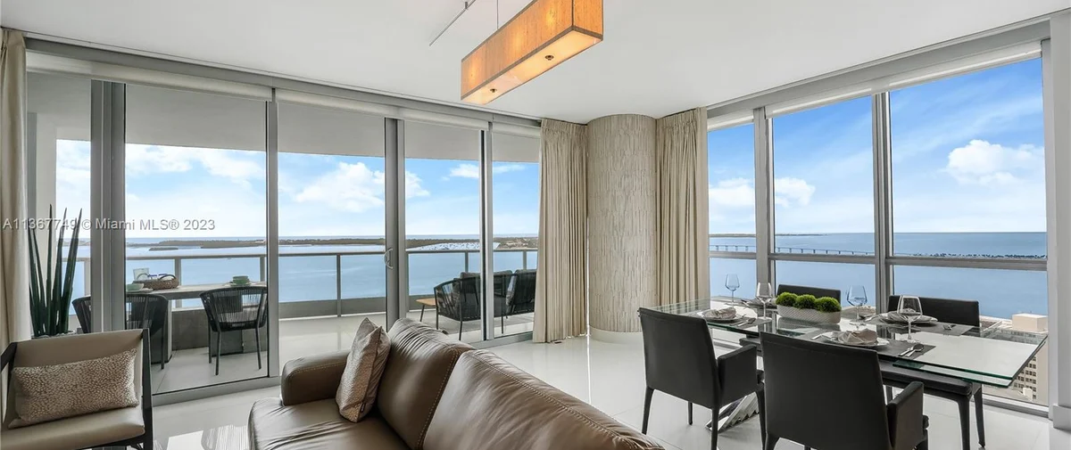 Jade at Brickell Bay is a 48-story residential skyscraper that was developed by Fortune International Realty and designed by Revuelta Vega Leon Architects. Completed in 2004, Jade at Brickell Bay has 338 condo residences comprised of one-, two-, three-, and four-bedroom floor plans plus penthouses (see Jade at Brickell Bay floor plans). Jade Brickell offers a stunning waterfront location in Miami’s Brickell neighborhood which is just a short walk away from the well-known, vibrant Brickell Avenue. Residents of Jade at Brickell Bay enjoy stunning views of the Atlantic Ocean, Biscayne Bay, and/or city.
