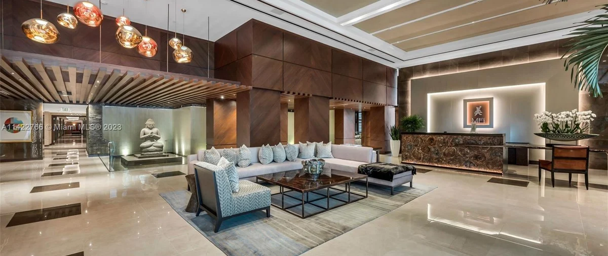 Mei Miami Beach is located at 5875 Collins Avenue, Miami Beach, FL 33140. Its location puts it on the northern end of ‘Millionaire’s Row’ in a neighborhood known as NoBe (North Miami Beach). Residents of Mei are just minutes from the world-renowned South Beach where you will be able to experience the vibrant culture and nightlife. Mei Miami Beach offers nothing but the finest amenities, including a state-of-the-art fitness center, swimming pool, private cabanas, full-service concierge, clubhouse, and tea lounge. Built in 2008, Mei Miami Beach has 135 condo residences each with views of the Atlantic Ocean and/or Intracoastal Waterway. Mei Miami Beach was developed by PMG Collins (a subsidiary of Property Markets Group) with interiors and common area spaces designed by Hirsch Bedner Interior Designers. The Asian-inspired building is comprised of one-, two-, and three-bedroom condo residences plus six two-story townhomes.