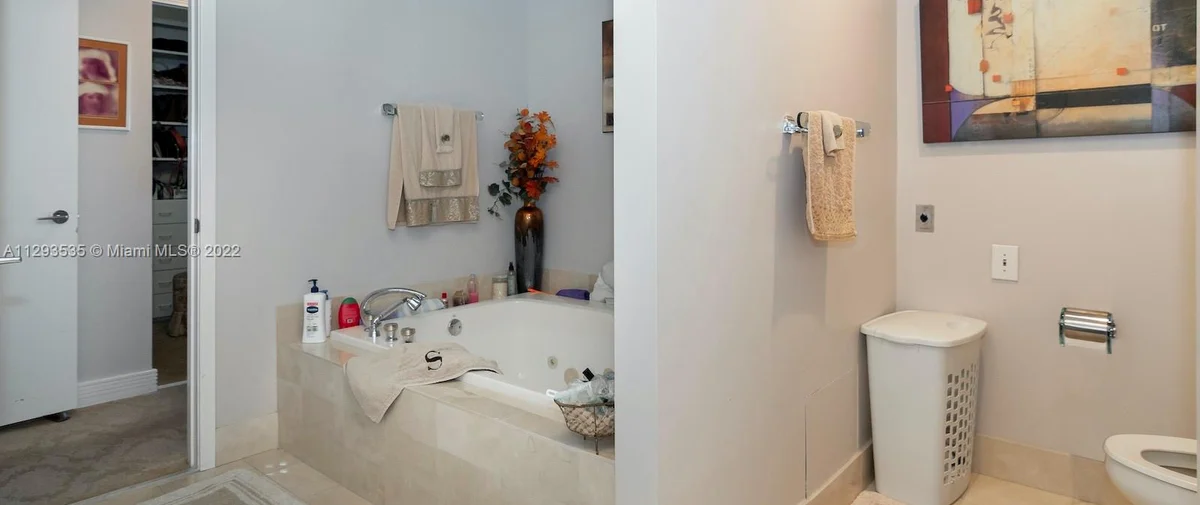 - Jetted bathtub and separate glass-enclosed shower in the master bathroom