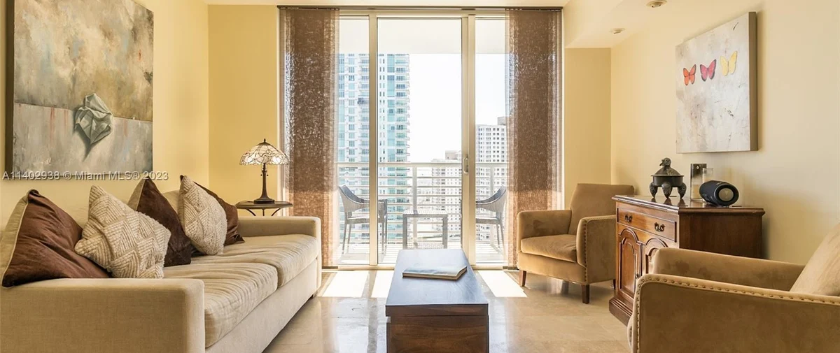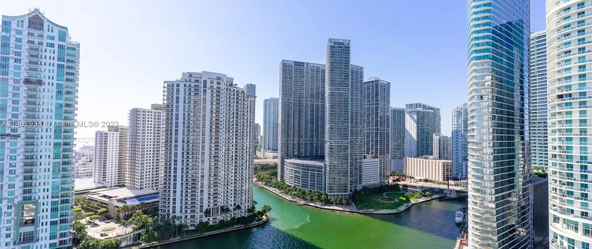 One Miami West condominiums is located at 325 S Biscayne Blvd in Downtown Miami. Completed in 2005, One Miami West is situated along the Miami River offering fabulous views of the city, bay, and river. One Miami was developed by Related Group and designed by Arquitectonica. The building rises 45 floors and includes 453 condo residences comprised of studios, one-, two-, and three-bedroom floor plans ranging in size from 507 to 1,792 interior square feet plus balcony.