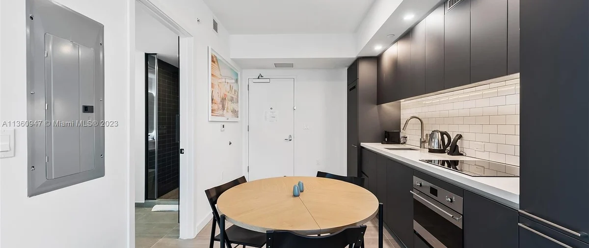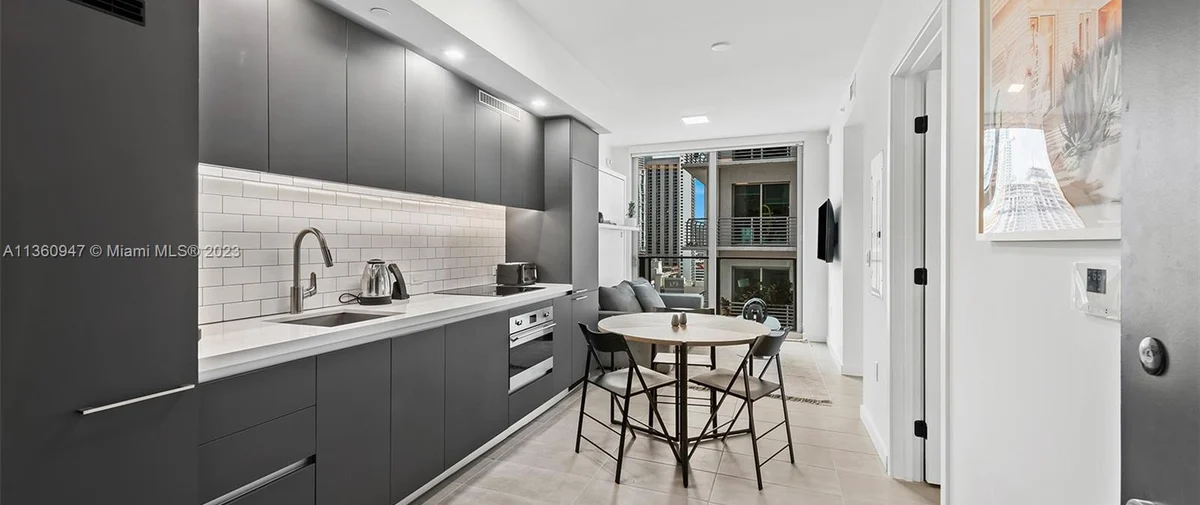 Yotelpad Miami is a new building developed by Aria Development Group and Aqarat. Stantec is the architect behind Yotelpad. Each unit offers carefully cultivated floorplans with integrated living and dining areas. The fully-finished interiors feature contemporary flooring with floor-to-ceiling glass windows. The European kitchen and baths showcase custom cabinetry with stone finishes as well as Smeg Designer Italian appliances. The units will also feature high-end appliances including an Electrolux washer and dryer, Grohe and Toto bath fixtures, Smart thermostats, Smart Lock System, and custom furniture packages.