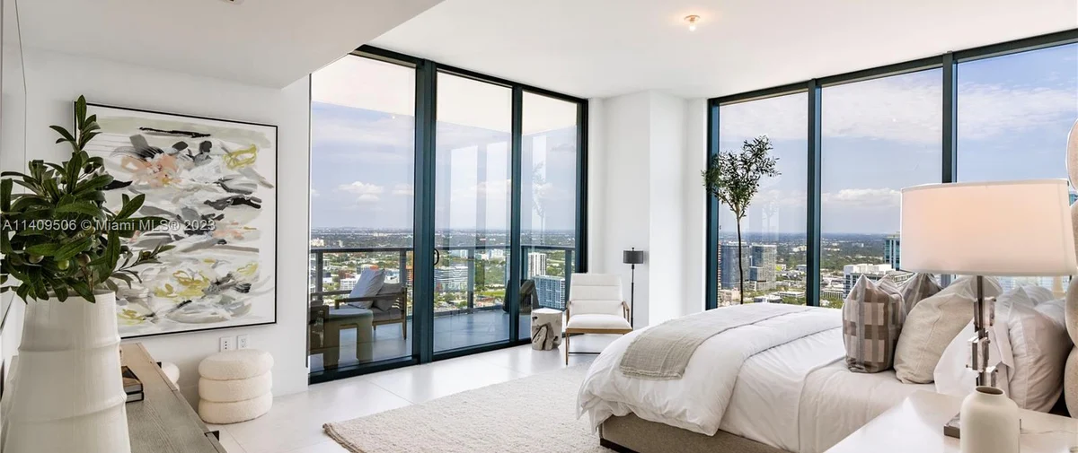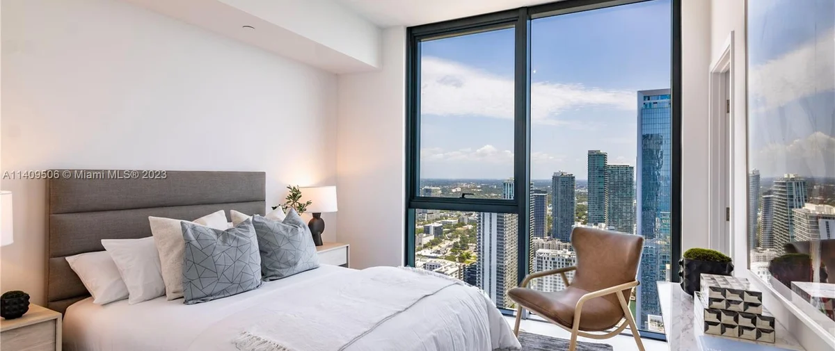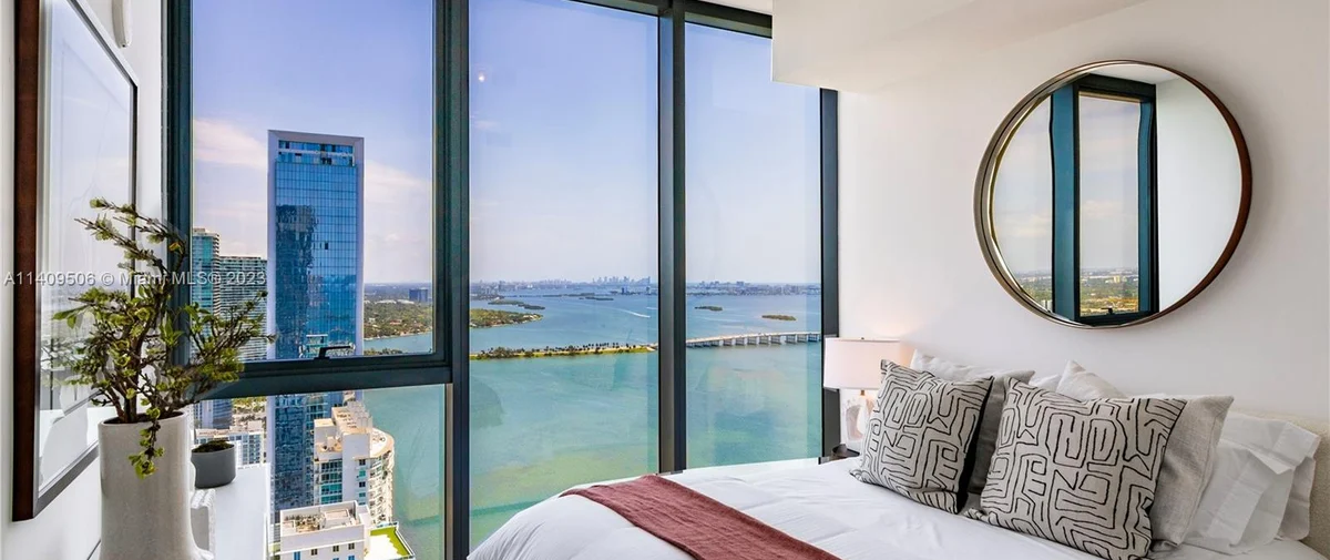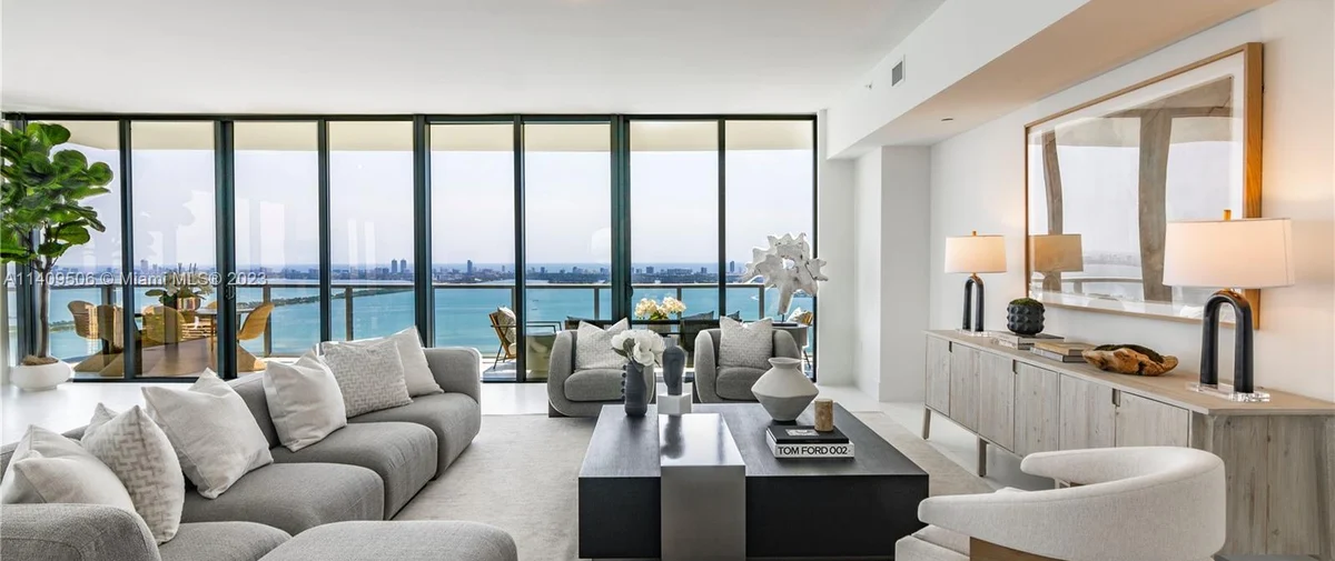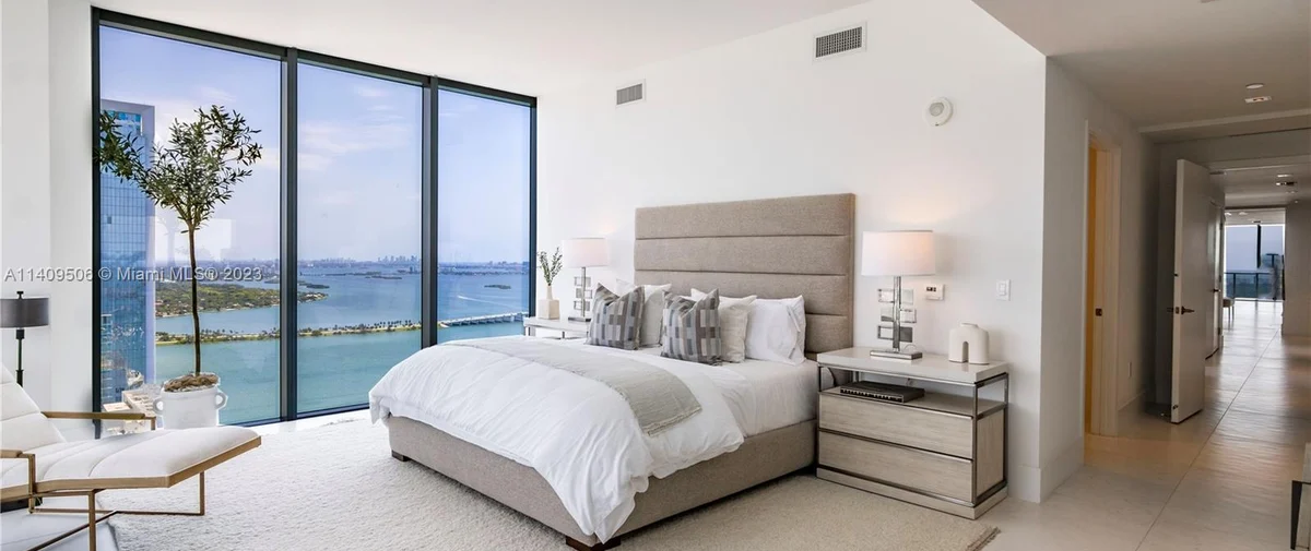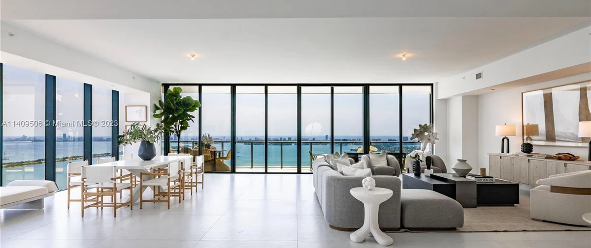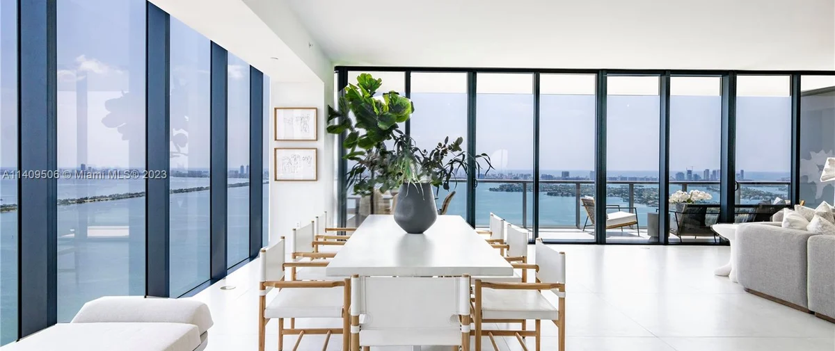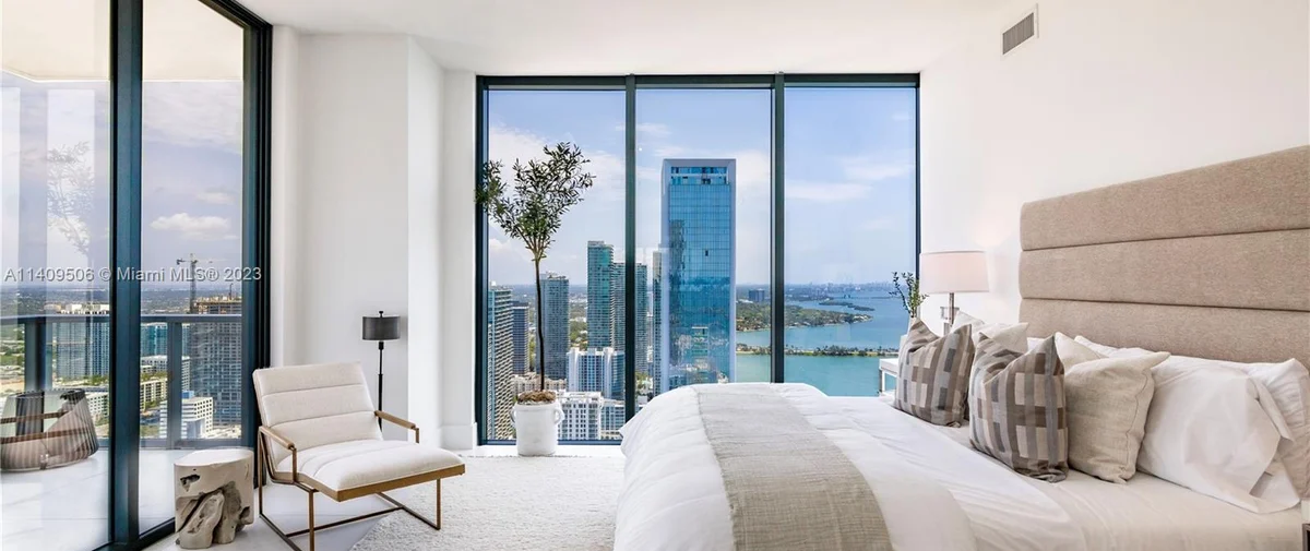Elysee Miami is a 57-story, bayfront condominium building located in Edgewater Miami. Completed in 2021, Elysee was developed by Two Roads Development with building design by world-renowned architecture firm Arquitectonica and interior design by award-winning interior designer Jean-Louise Deniot. Residences at Elysee Miami have 10- and 11-foot high ceilings with floor-to-ceiling glass windows. Elysee is comprised of just 100 residences consisting of three-, four-, and five-bedroom residences ranging in size from 2,660 to 3,995 interior square feet (see Elysee Miami floor plans). Although recently completed, Elysee is considered an instant iconic building in Edgewater’s skyline.