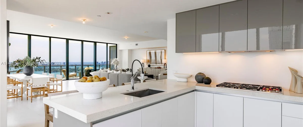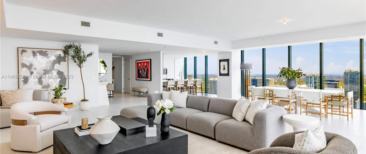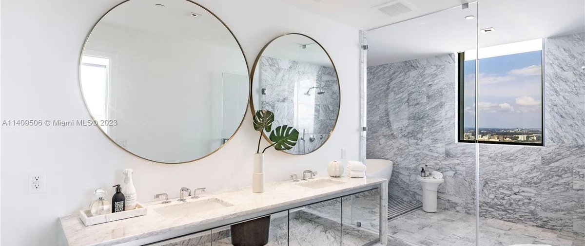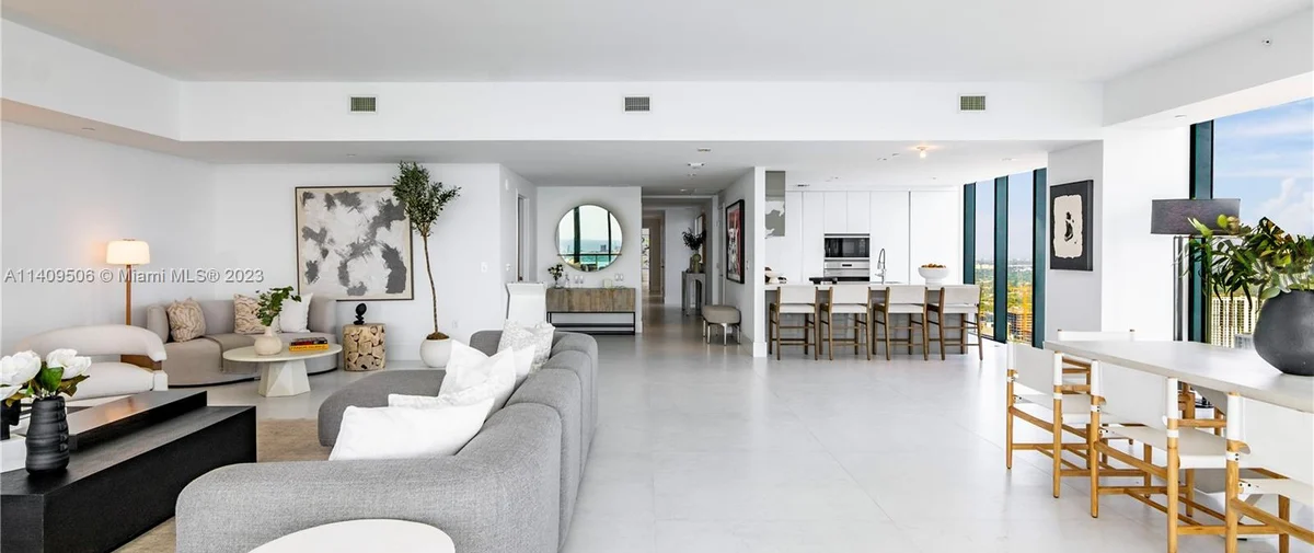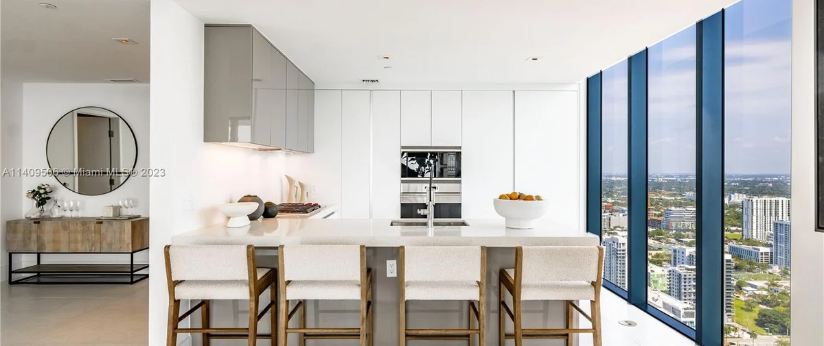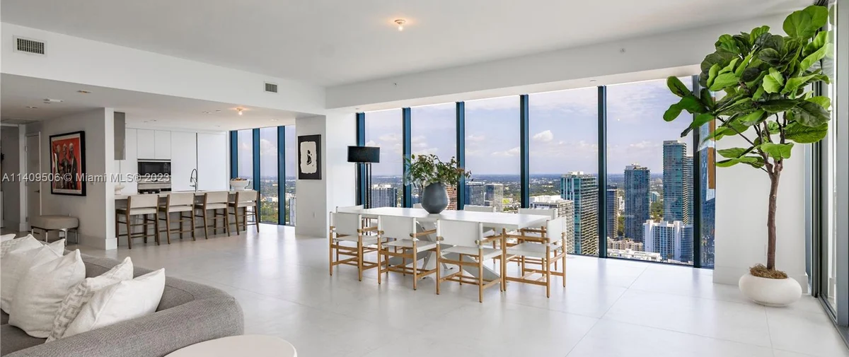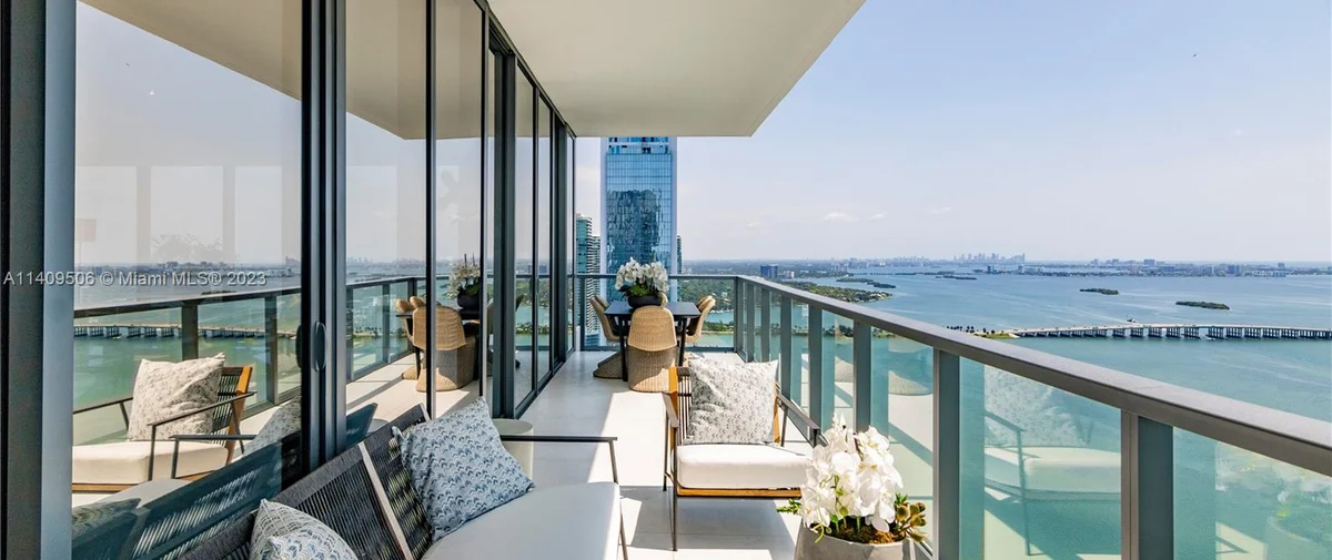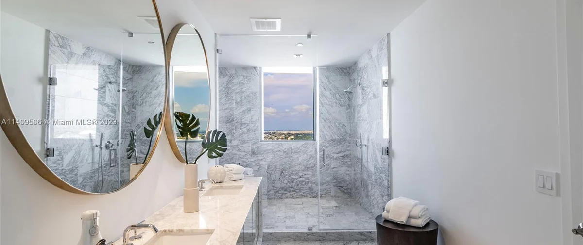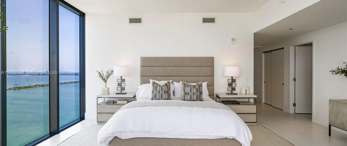 Elysee Miami is a 57-story, bayfront condominium building located in Edgewater Miami. Completed in 2021, Elysee was developed by Two Roads Development with building design by world-renowned architecture firm Arquitectonica and interior design by award-winning interior designer Jean-Louise Deniot. Residences at Elysee Miami have 10- and 11-foot high ceilings with floor-to-ceiling glass windows. Elysee is comprised of just 100 residences consisting of three-, four-, and five-bedroom residences ranging in size from 2,660 to 3,995 interior square feet (see Elysee Miami floor plans). Although recently completed, Elysee is considered an instant iconic building in Edgewater’s skyline.