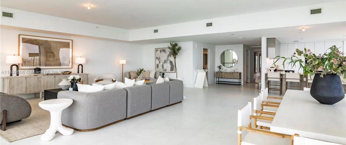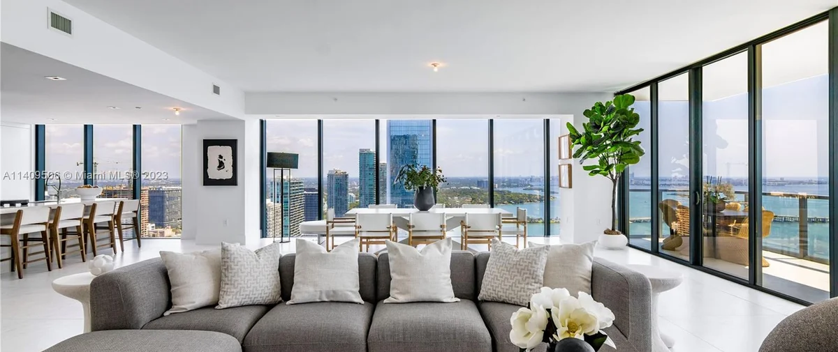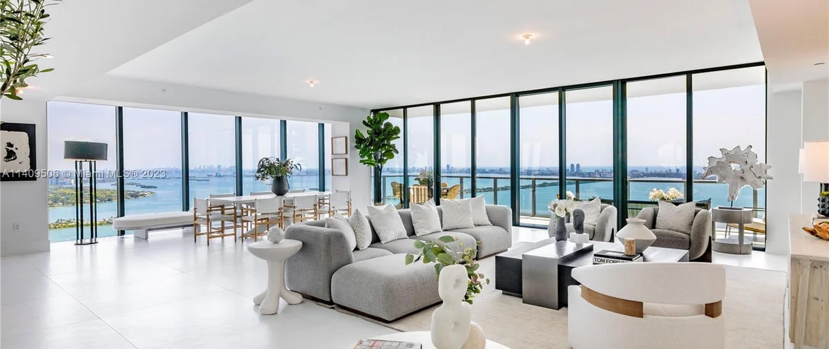 - Great Room with Grand Piano and unobstructed views of Biscayne Bay and Downtown Miami