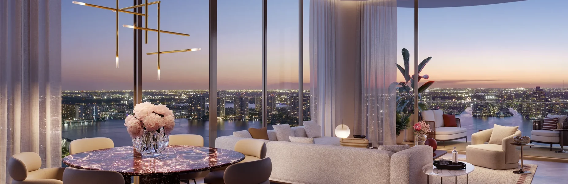 Situated on a privileged plot with 435 linear feet of white sand beach, the complex offers uninterrupted views of the Atlantic Ocean, the Intracoastal Waterway, and the city, through floor-to-ceiling windows in all residences. With layouts ranging from 2,000 to over 10,000 square feet, each residence is designed to provide volume, natural light, and the highest quality finishes.