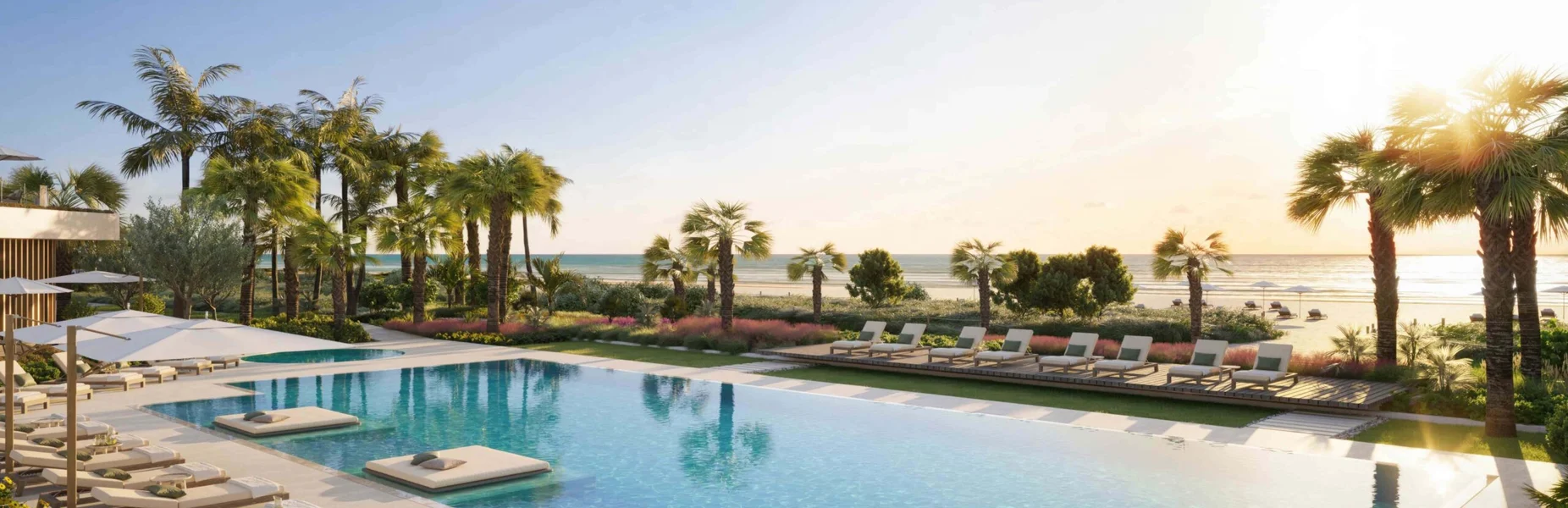 - Beachside pool and outdoor spa with sunbeds and private cabanas.