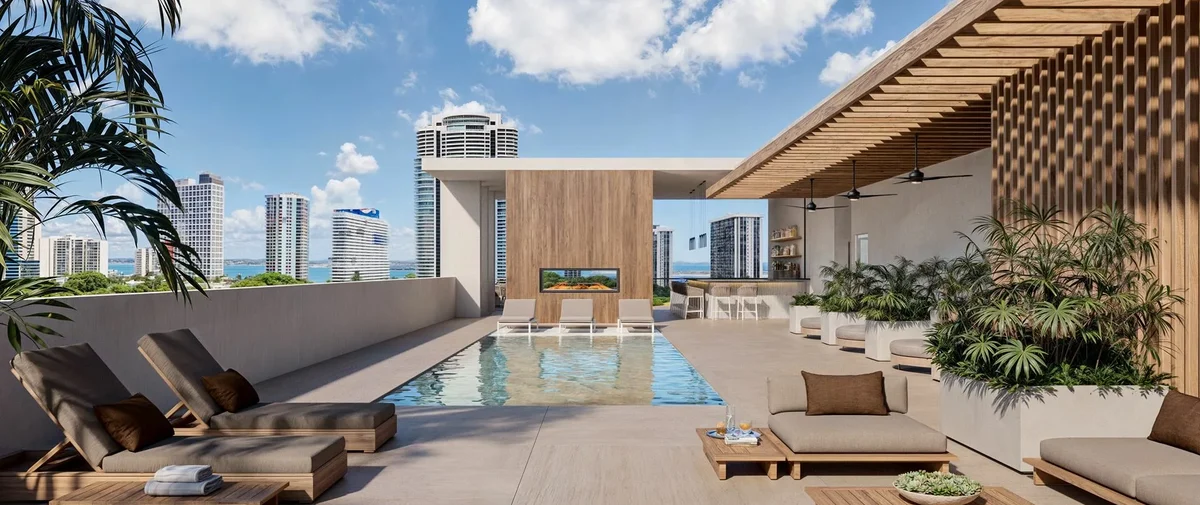 - Rooftop con piscina y salón con vistas 360 de Brickell.