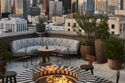 - Amenidades en piso 7o con una terraza que incluye piscina, spa al aire libre y cabañas junto a la piscina.