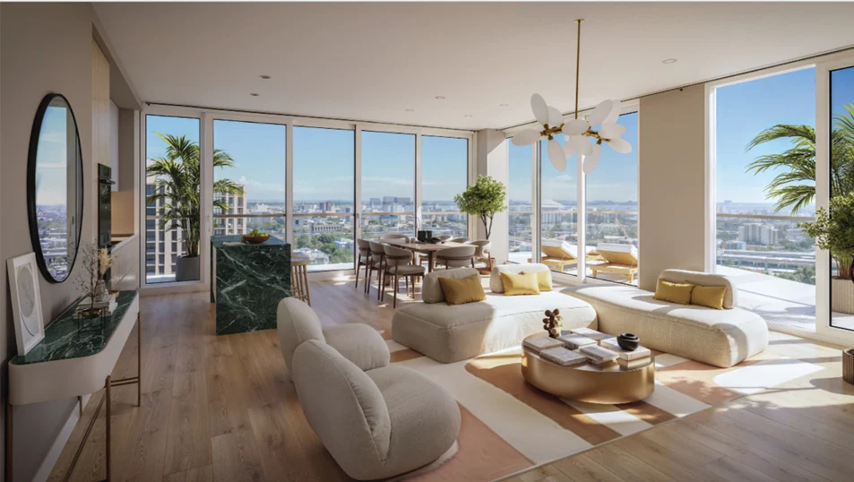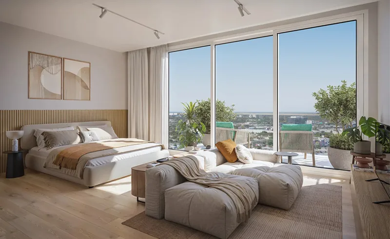 Las residencias, con superficies que oscilan entre 588 y 1,730 pies cuadrados, brindan vistas panorámicas del océano y del paisaje urbano de Miami. Además, los residentes tendrán acceso exclusivo al Beach Club en The Shelborne, ubicado en South Beach.